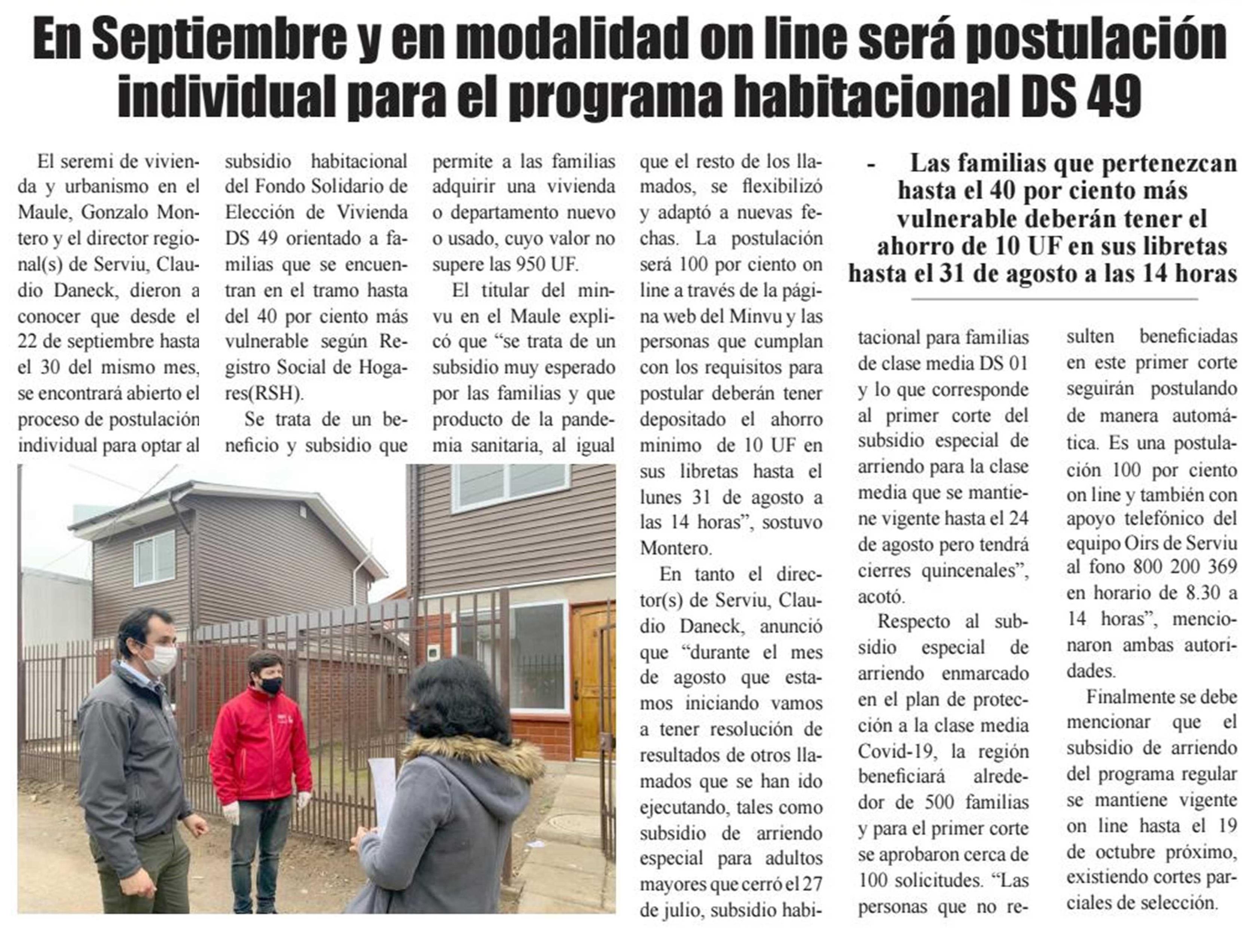 Resultado de asignaciones mensuales año 2021. Tenemos 2 viviendas en venta para tu búsqueda subsidio ds 49, con precios desde $40.162.880. Preguntas frecuentes subsidio ds49 2020. Requisitos, importe de las ayudas y trámites. Se revisarán los antecedentes de quienes buenas noches, cuando estará el correo con el resultado de la postulación.